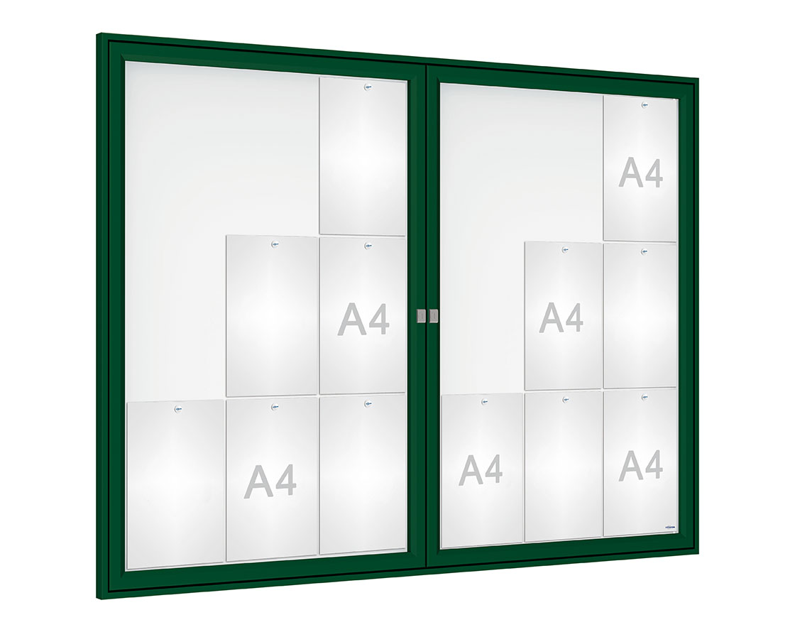 Schaukasten Tradition Farbe:RAL 6005|Abmessungen:18 A4 - B 1400 x H 1050 mm