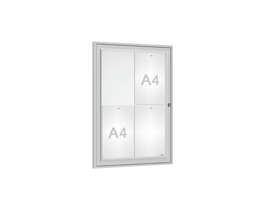 Schaukasten Tradition Farbe:Silber eloxiert|Abmessungen:4 A4 - B 550 x H 750 mm