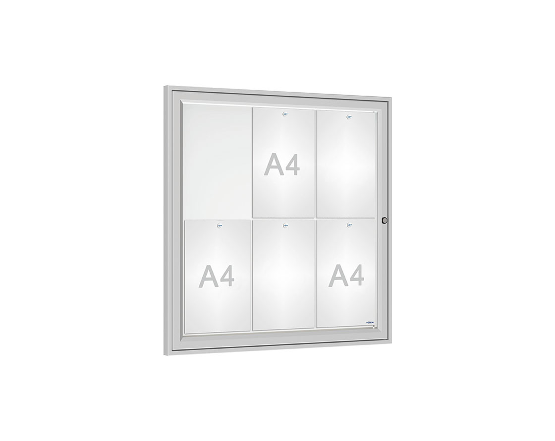 Schaukasten Tradition Farbe:Silber eloxiert|Abmessungen:6 A4 - B 750 x H 750 mm