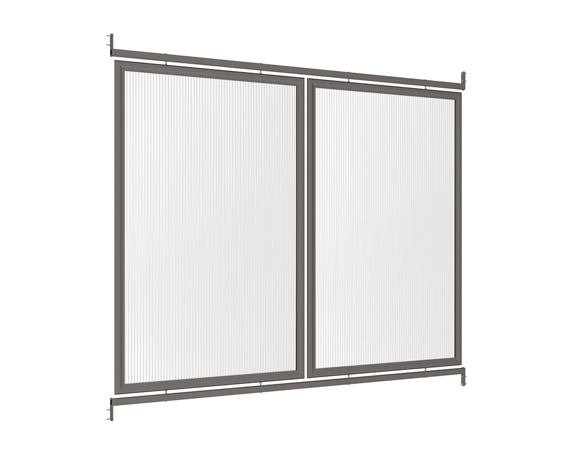 Seiten- und Rückwandverkleidung: Struktur aus Aluprofil und Verglasung. UV-beständige 10 mm starke Polycarbonat-Stegplatten