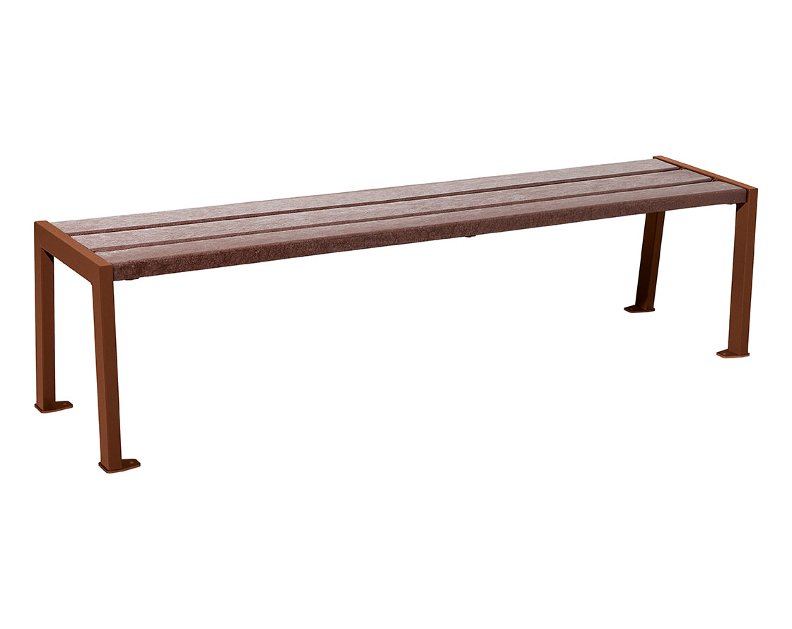 Recycling-Kunststoff: Leisten 40 mm breit, gestärkt durch innenliegende Armierung 25x6 aus feuerverzinktem Stahl (ausser Rückenlehne)