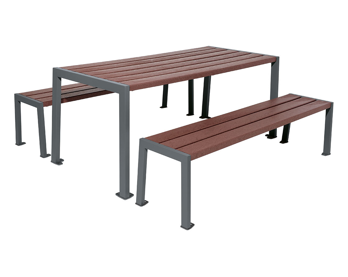 Sitzgruppe Silaos® aus Recycling-Kunststoff Farbe:Procity grau|Struktur:Tisch