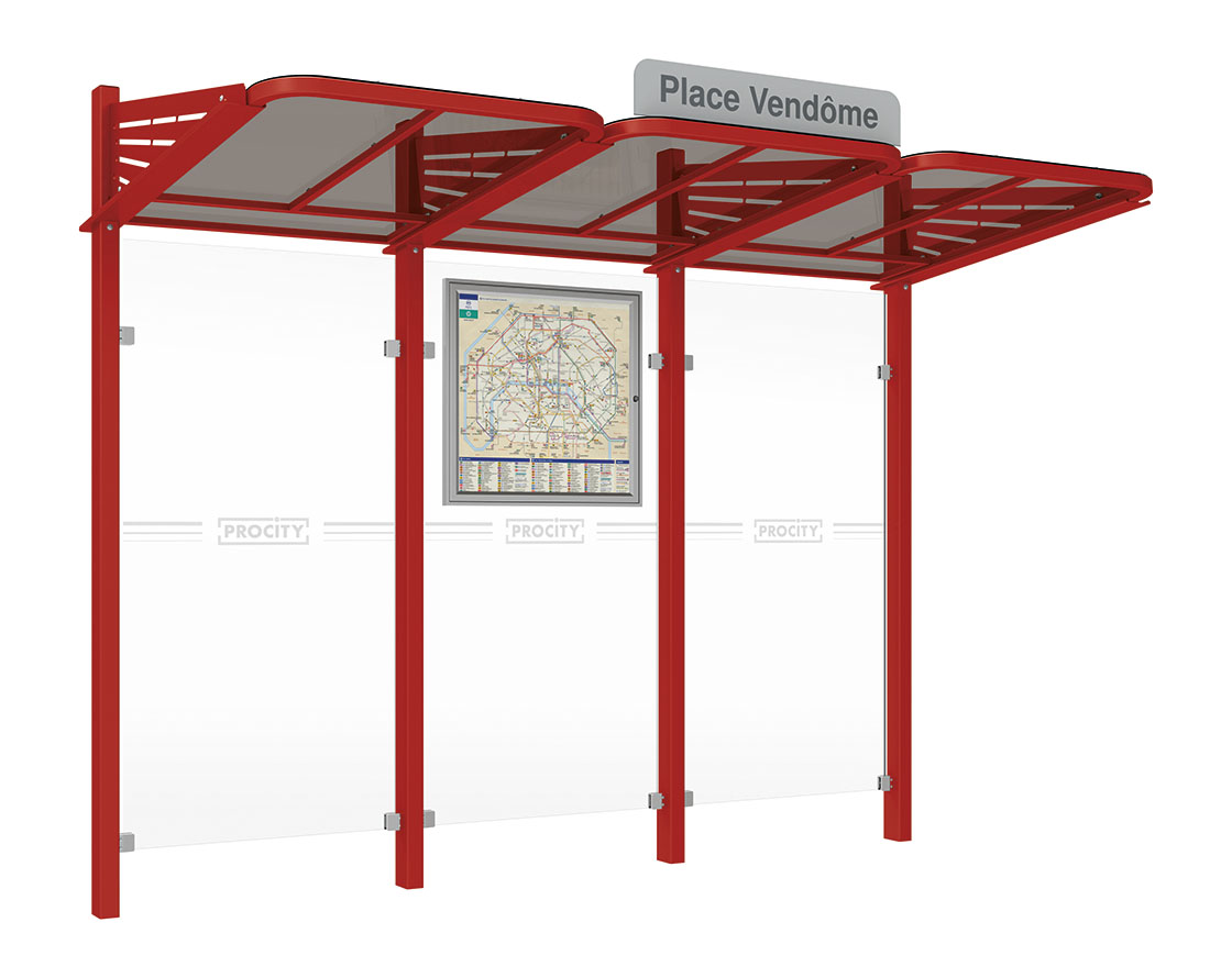 Wartehalle Convi Farbe:RAL 3004|Struktur:Ohne Seitenverkleidung