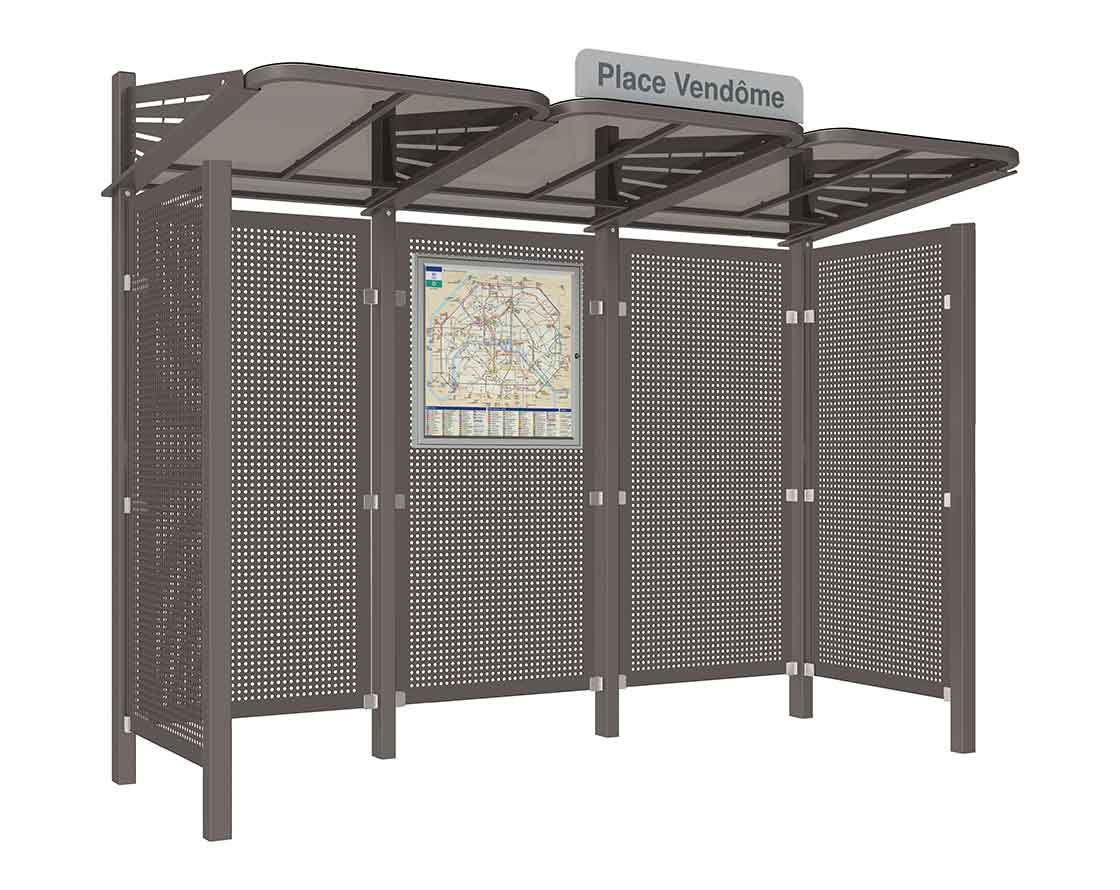 Wartehalle Convi Verkleidungen aus Stahl Farbe:Procity grau|Struktur:2 Seitenverkleidungen