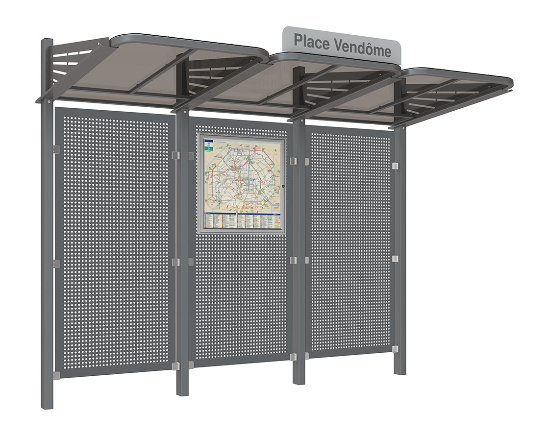 Wartehalle Convi Verkleidungen aus Stahl Farbe:Procity grau|Struktur:Ohne Seitenverkleidung