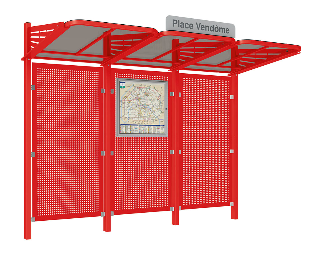 Wartehalle Convi Verkleidungen aus Stahl Farbe:RAL 3020|Struktur:Ohne Seitenverkleidung