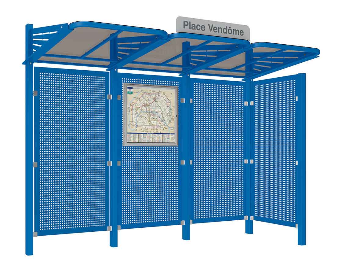Wartehalle Convi Verkleidungen aus Stahl Farbe:RAL 5010|Struktur:Mit Seitenverkleidung rechts