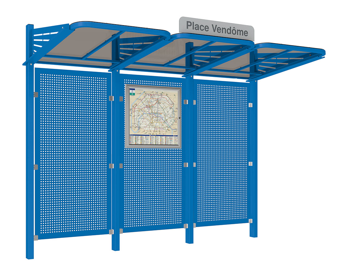 Wartehalle Convi Verkleidungen aus Stahl Farbe:RAL 5010|Struktur:Ohne Seitenverkleidung