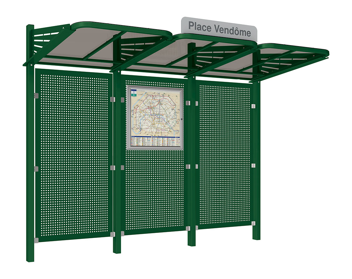 Wartehalle Convi Verkleidungen aus Stahl Farbe:RAL 6005|Struktur:Ohne Seitenverkleidung