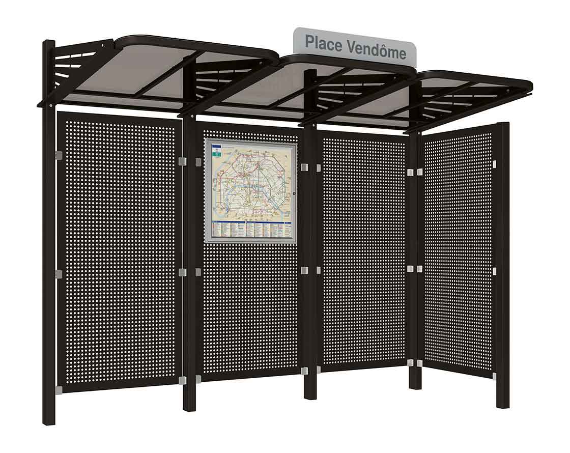 Wartehalle Convi Verkleidungen aus Stahl Farbe:RAL 9005|Struktur:Mit Seitenverkleidung rechts