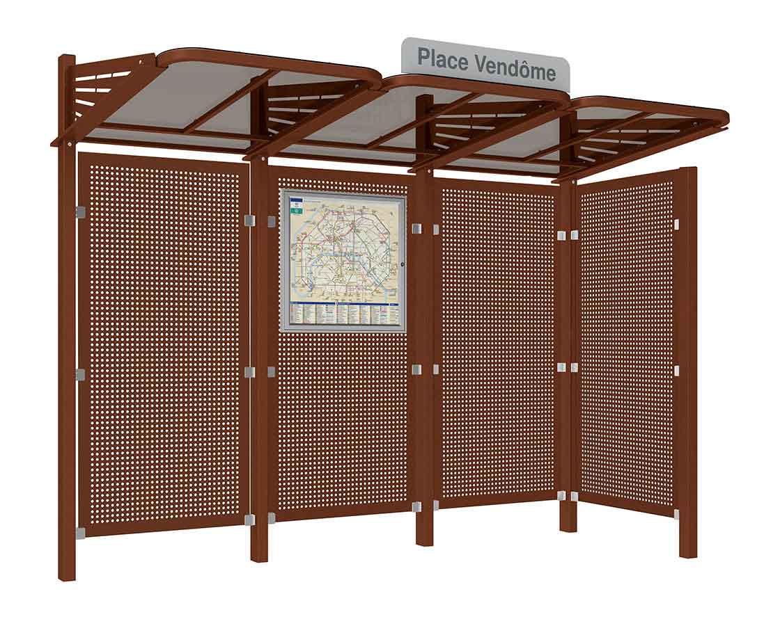 Wartehalle Convi Verkleidungen aus Stahl Farbe:Rost Korten Effekt|Struktur:Mit Seitenverkleidung rechts