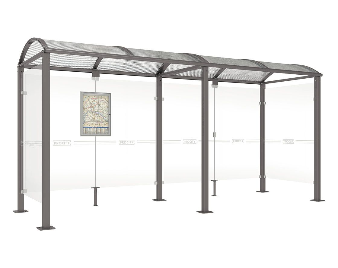 Wartehalle Malta Farbe:Procity grau|Länge:5 000 mm|Struktur:Seitenverkleidung links und rechts
