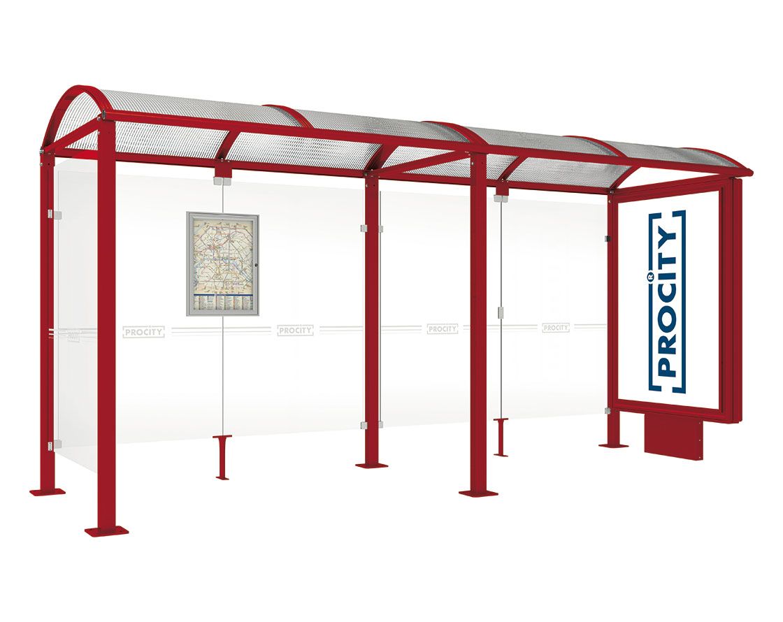 Wartehalle Malta Farbe:RAL 3004|Länge:5 000 mm|Struktur:Beleuchteter VIP-Caisson rechts und Seitenverkleidung links
