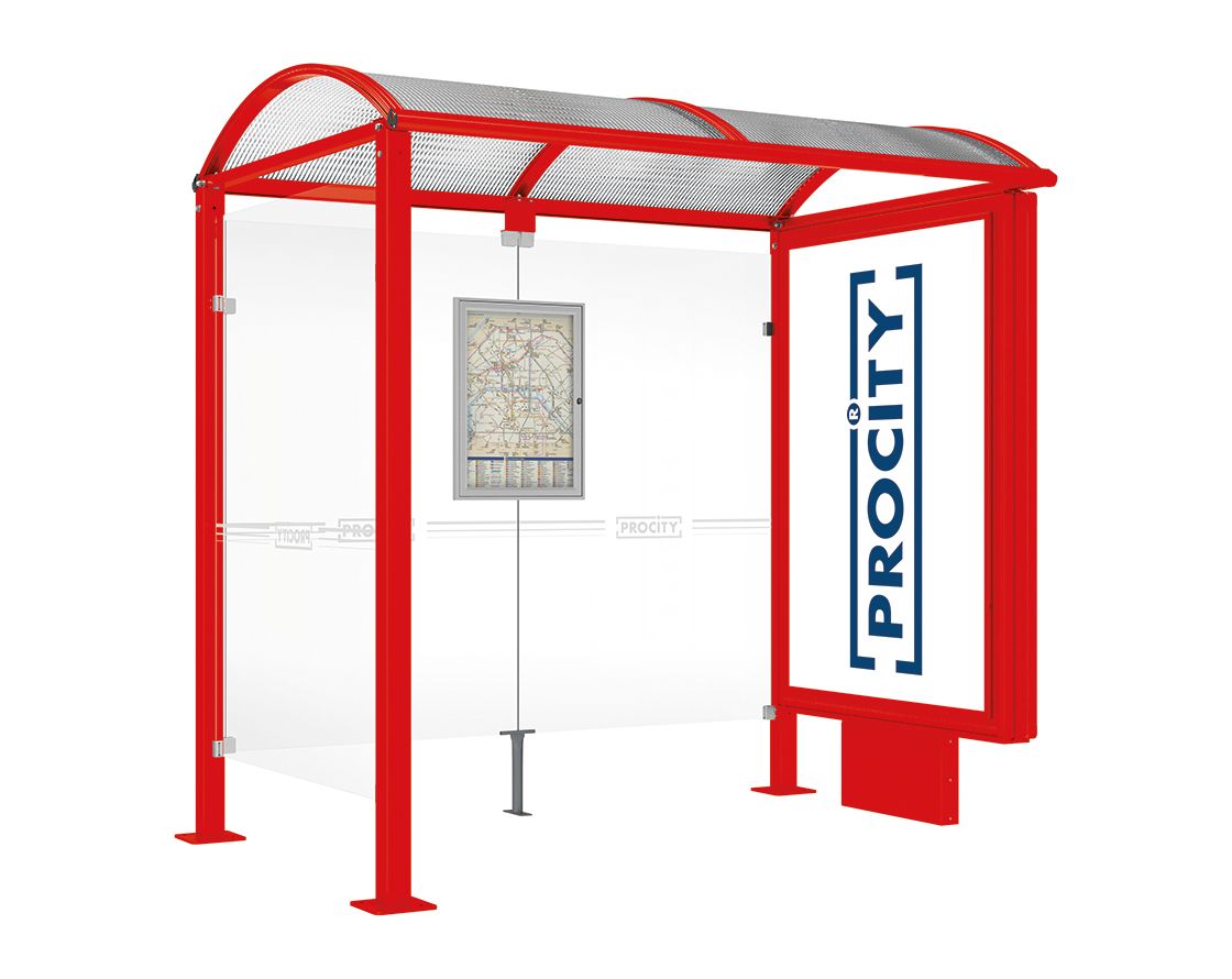 Wartehalle Malta Farbe:RAL 3020|Länge:2 500 mm|Struktur:Beleuchteter VIP-Caisson rechts und Seitenverkleidung links