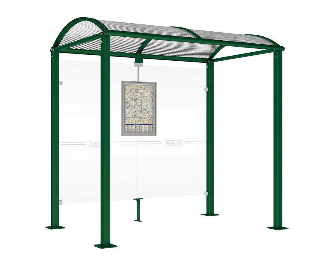 Wartehalle Malta Farbe:RAL 6005|Länge:2 500 mm|Struktur:Ohne Seitenverkleidung