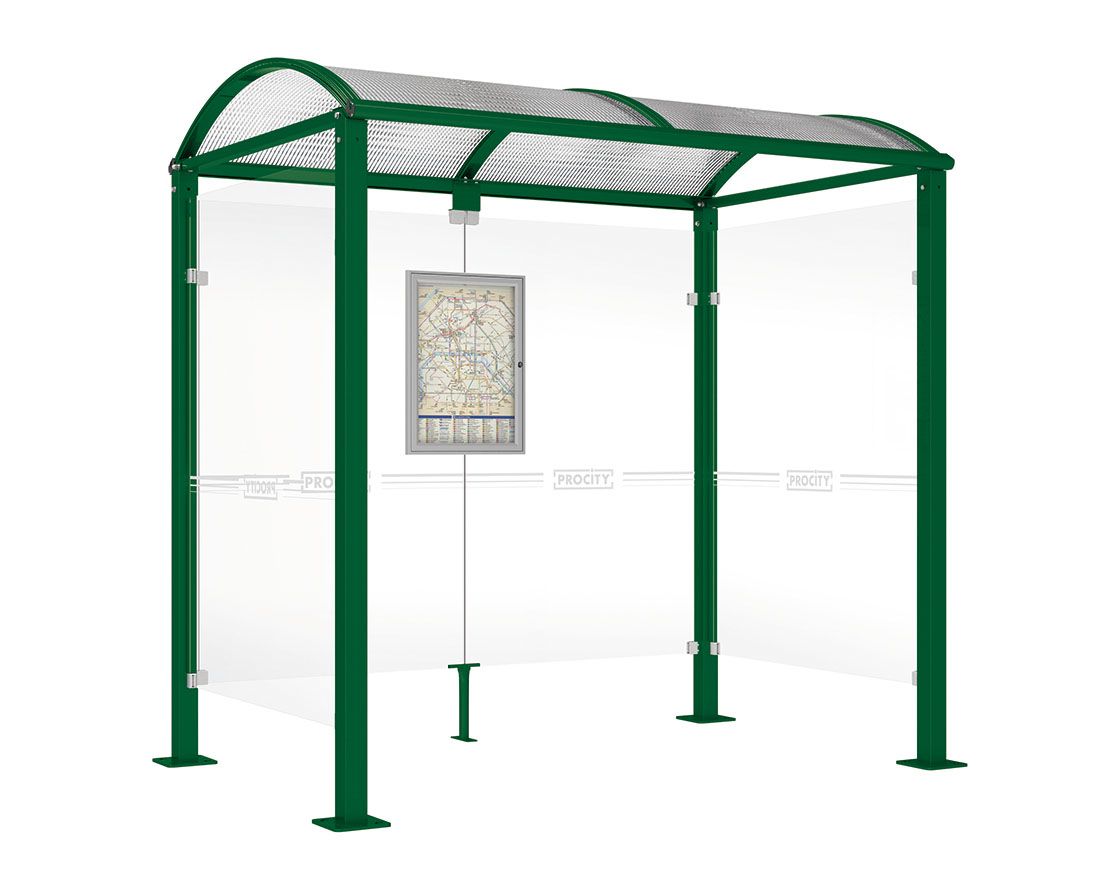 Wartehalle Malta Farbe:RAL 6005|Länge:2 500 mm|Struktur:Seitenverkleidung links und rechts