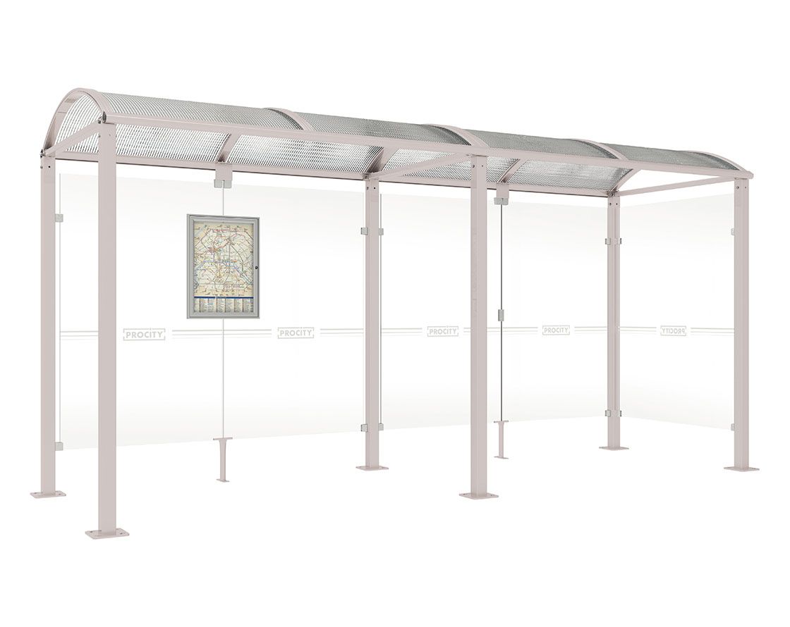 Wartehalle Malta Farbe:RAL 7044|Länge:5 000 mm|Struktur:Seitenverkleidung rechts