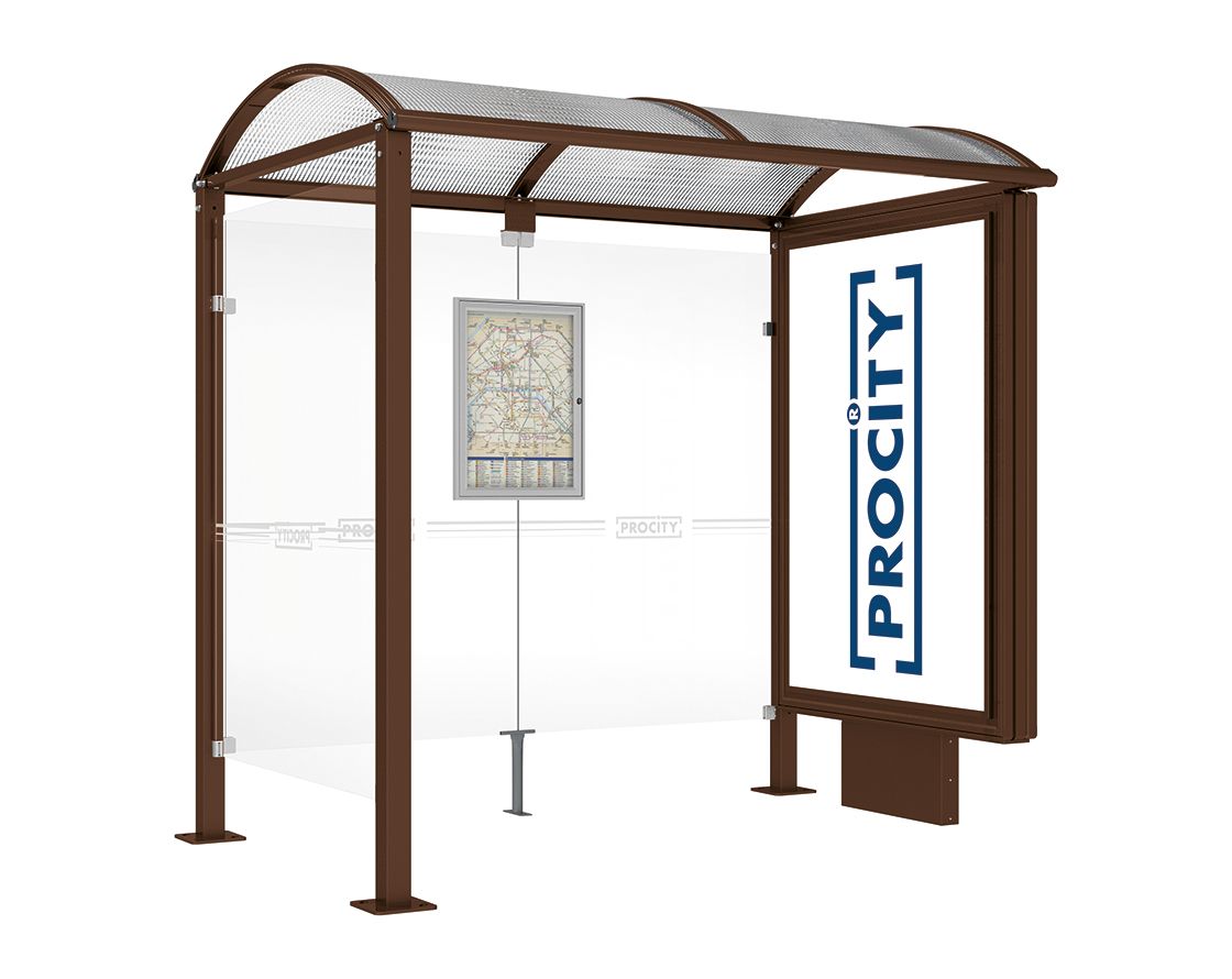 Wartehalle Malta Farbe:RAL 8017|Länge:2 500 mm|Struktur:Beleuchteter VIP-Caisson rechts und Seitenverkleidung links