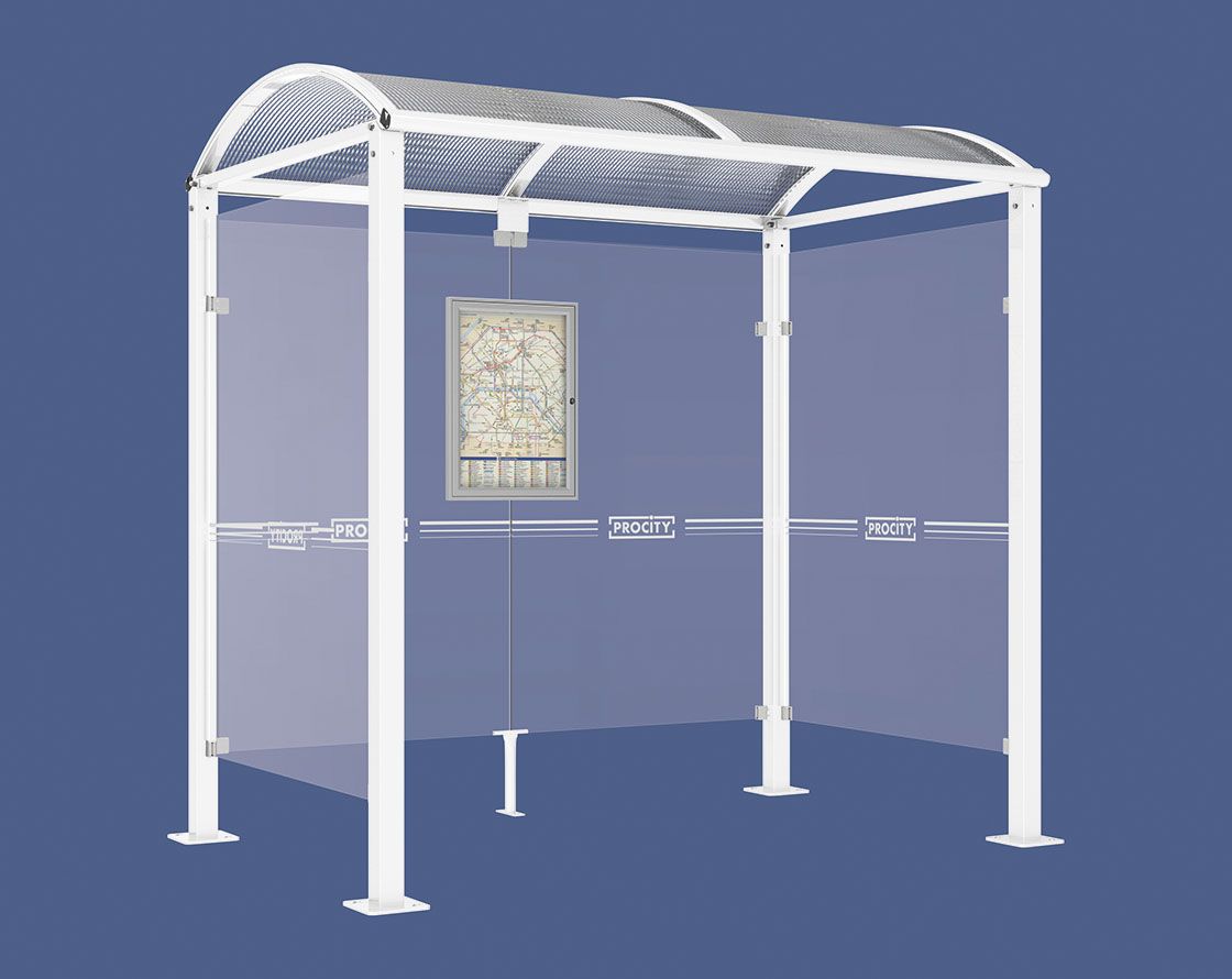 Wartehalle Malta Farbe:RAL 9010|Länge:2 500 mm|Struktur:Seitenverkleidung links und rechts