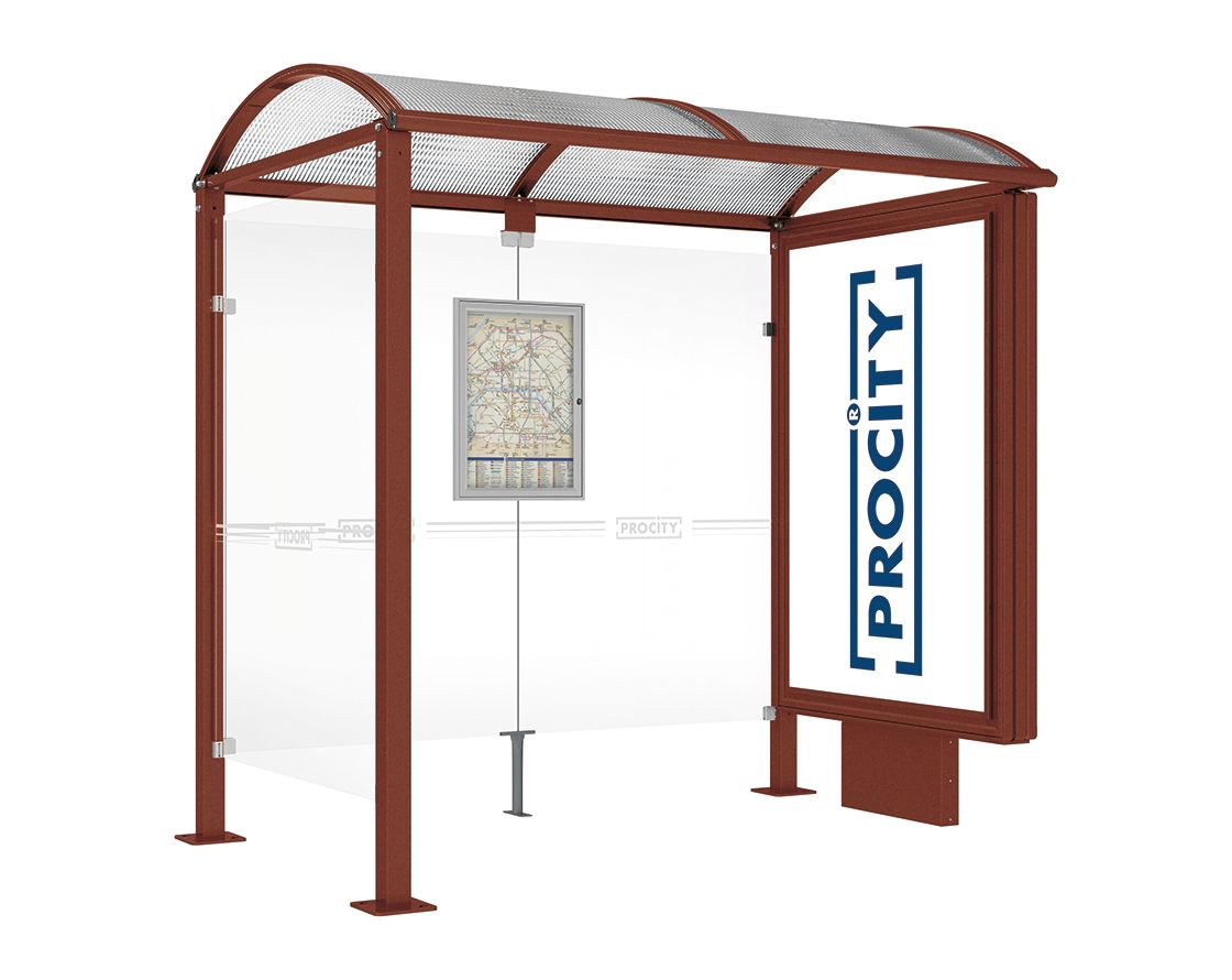 Wartehalle Malta Farbe:Rost Korten Effekt|Länge:2 500 mm|Struktur:Beleuchteter VIP-Caisson rechts und Seitenverkleidung links