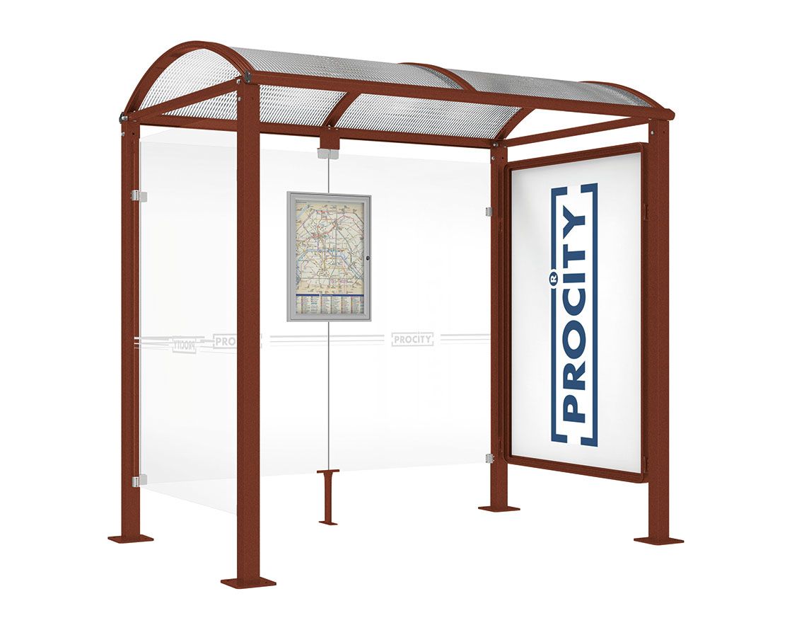 Wartehalle Malta Farbe:Rost Korten Effekt|Länge:2 500 mm|Struktur:Schaukasten 2000 rechts und Seiterverkleidung links