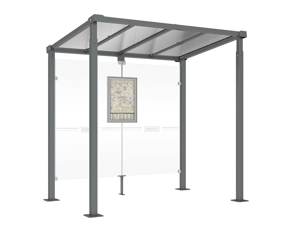 Wartehalle Milano Farbe:Procity grau|Länge:Länge 2500 mm|Struktur:Ohne Verkleidungen
