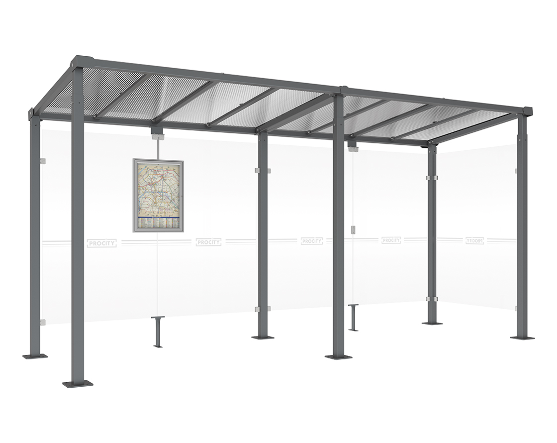 Wartehalle Milano Farbe:Procity grau|Länge:Länge 5000 mm|Struktur:1 Seitenverkleidung