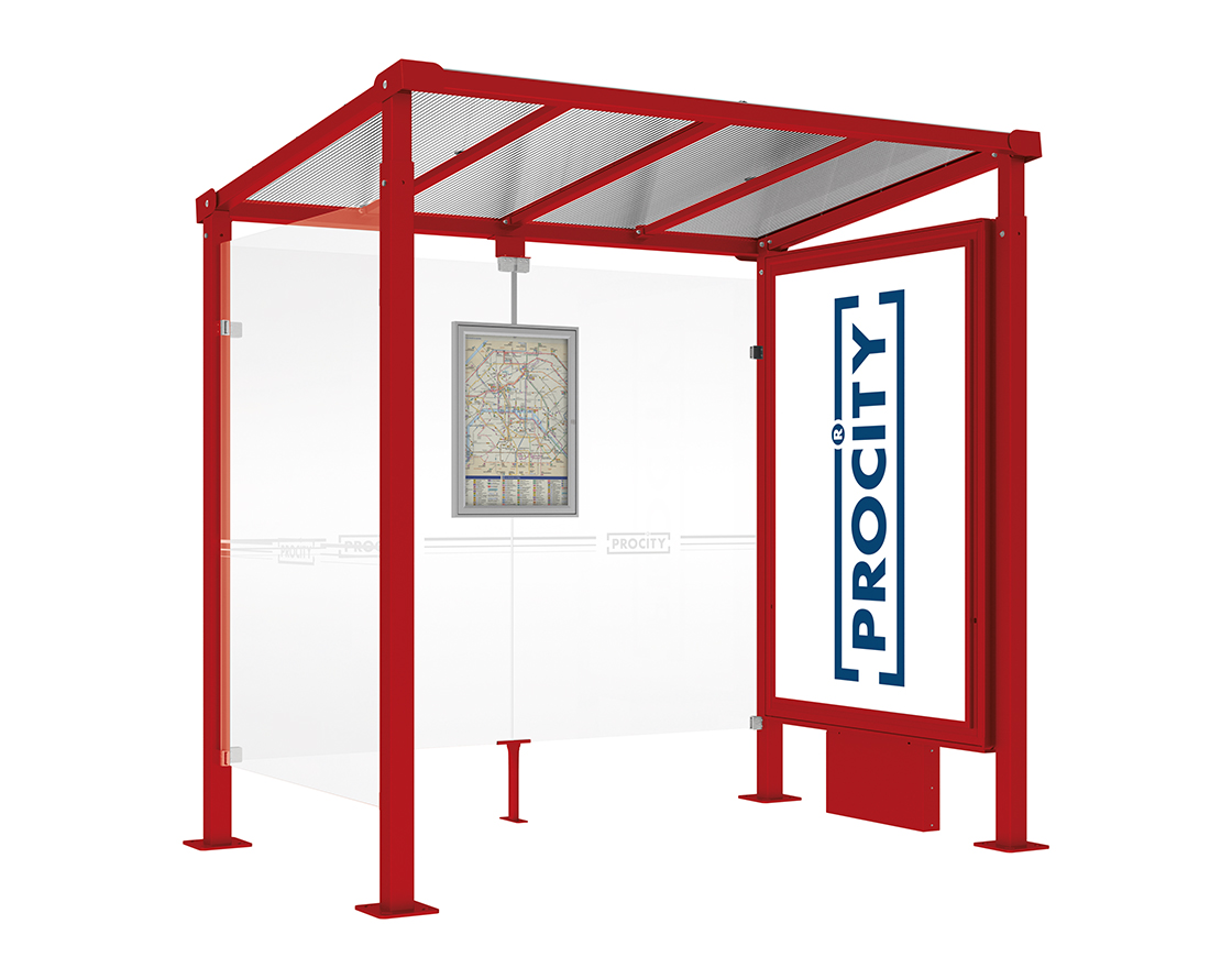 Wartehalle Milano Farbe:RAL 3004|Länge:Länge 2500 mm|Struktur:Leuchtcaisson VIP auf Mittelfuß und 1 Seitenverkleidung
