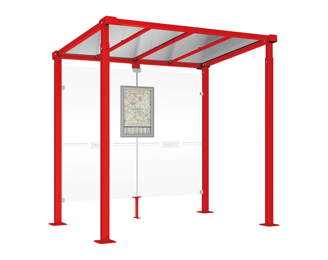 Wartehalle Milano Farbe:RAL 3020|Länge:Länge 2500 mm|Struktur:Ohne Verkleidungen