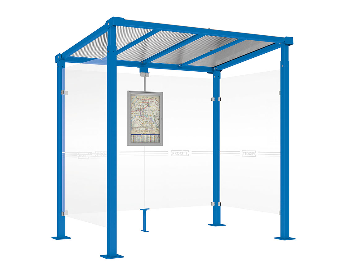 Wartehalle Milano Farbe:RAL 5010|Länge:Länge 2500 mm|Struktur:2 Seitenverkleidungen