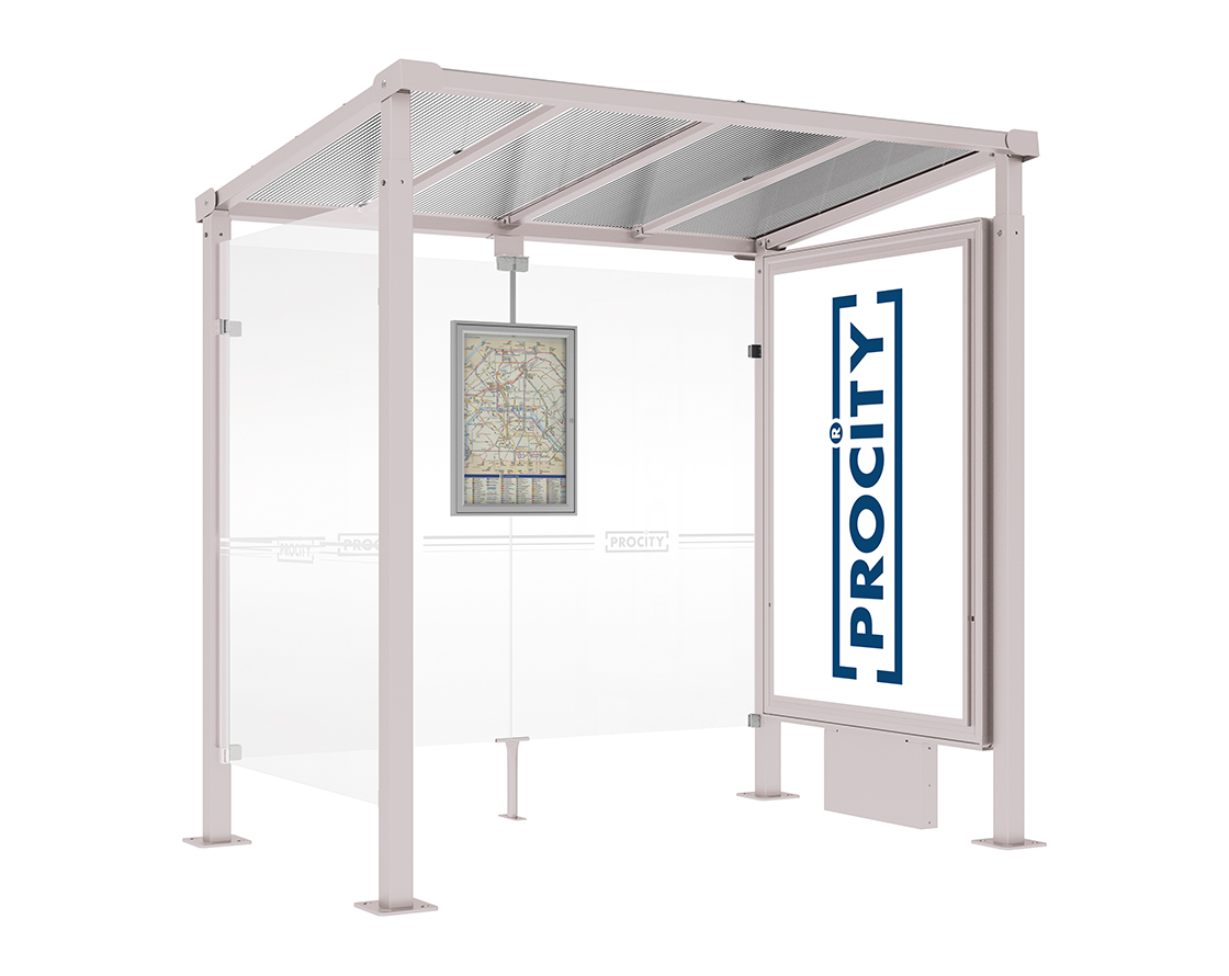 Wartehalle Milano Farbe:RAL 7044|Länge:Länge 2500 mm|Struktur:Leuchtcaisson VIP auf Mittelfuß und 1 Seitenverkleidung