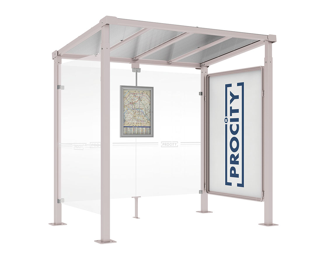 Wartehalle Milano Farbe:RAL 7044|Länge:Länge 2500 mm|Struktur:Schaukasten 2000 und 1 Seitenverkleidung