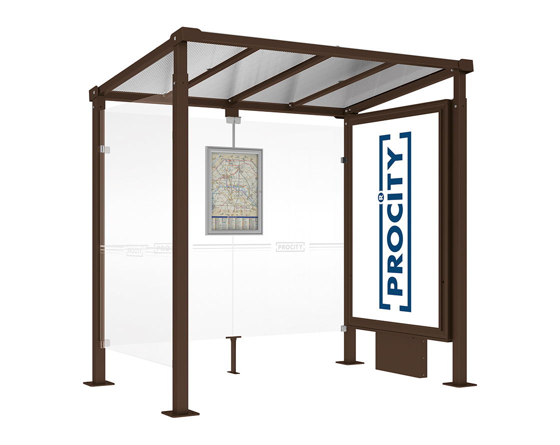 Wartehalle Milano Farbe:RAL 8017|Länge:Länge 2500 mm|Struktur:Leuchtcaisson VIP auf Mittelfuß und 1 Seitenverkleidung