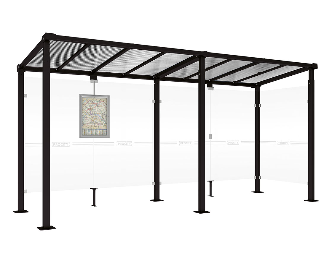 Wartehalle Milano Farbe:RAL 9005|Länge:Länge 5000 mm|Struktur:1 Seitenverkleidung