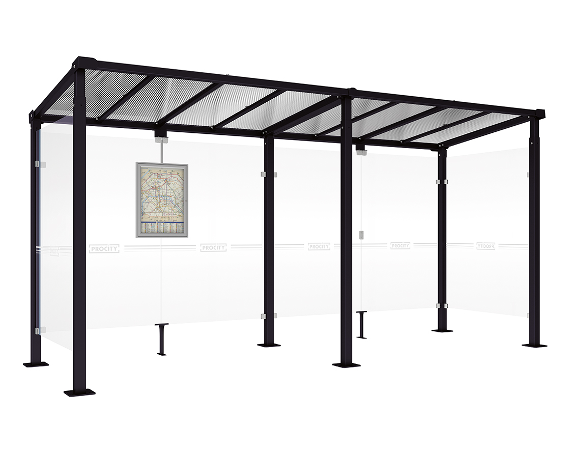Wartehalle Milano Farbe:RAL 9005|Länge:Länge 5000 mm|Struktur:2 Seitenverkleidungen