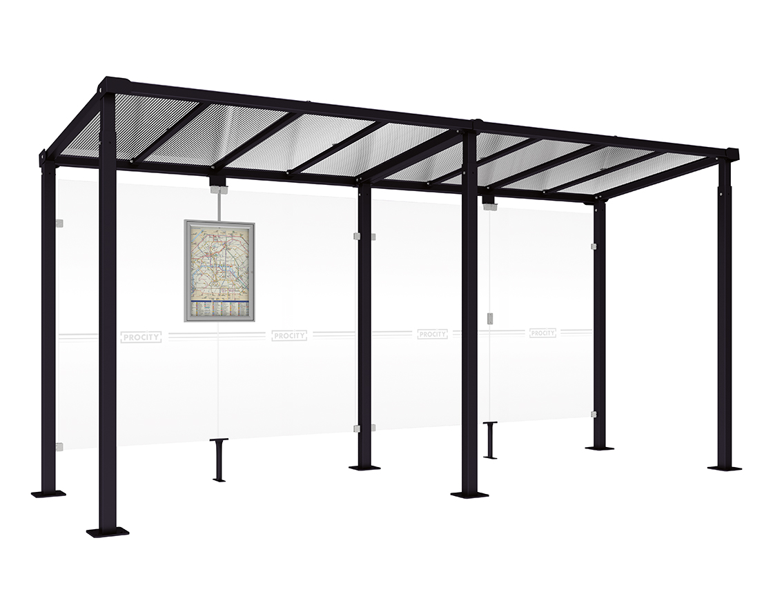 Wartehalle Milano Farbe:RAL 9005|Länge:Länge 5000 mm|Struktur:Ohne Verkleidungen