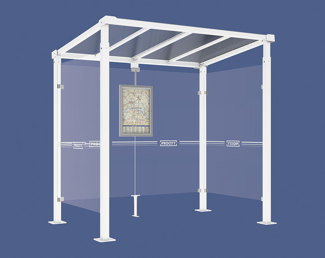 Wartehalle Milano Farbe:RAL 9010|Länge:Länge 2500 mm|Struktur:2 Seitenverkleidungen