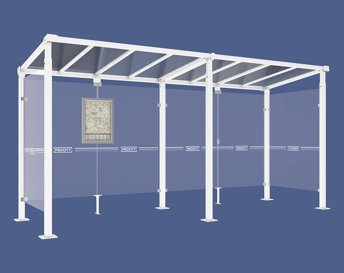 Wartehalle Milano Farbe:RAL 9010|Länge:Länge 5000 mm|Struktur:2 Seitenverkleidungen