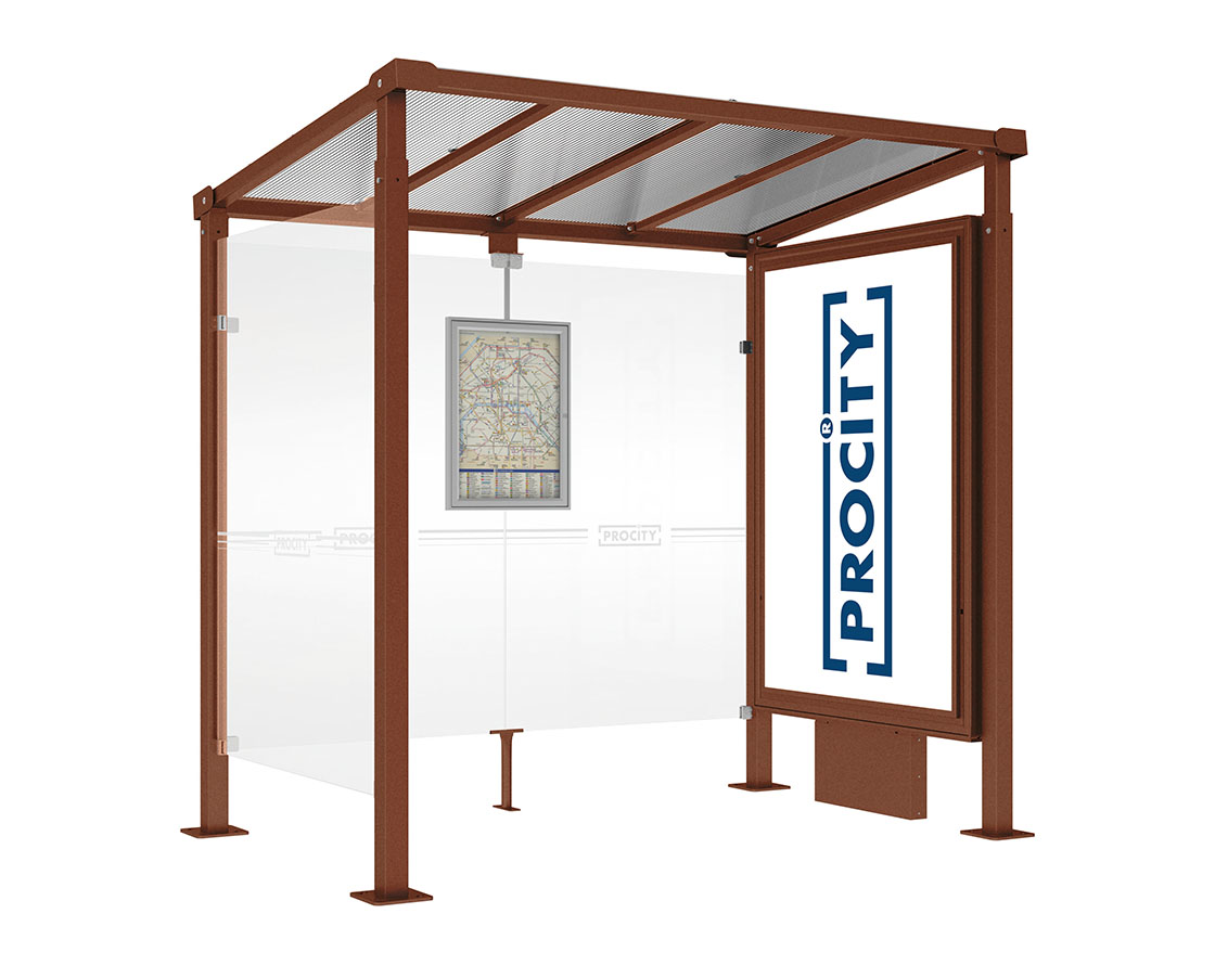 Wartehalle Milano Farbe:Rost Korten Effekt|Länge:Länge 2500 mm|Struktur:Leuchtcaisson VIP auf Mittelfuß und 1 Seitenverkleidung