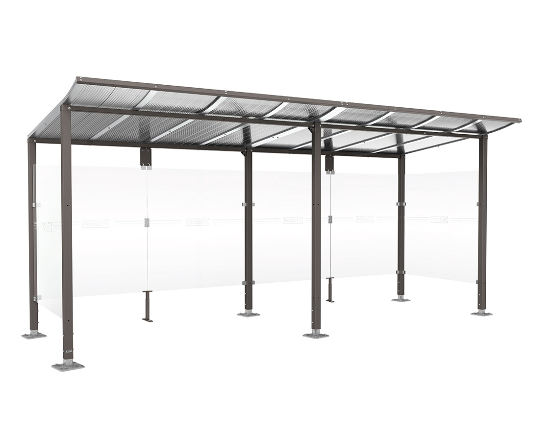 Wartehalle Modulo Farbe:Procity grau|Länge:5 000 mm|Struktur:2 Seitenverkleidungen|Weitere Merkmale:Auf Bodenplatten