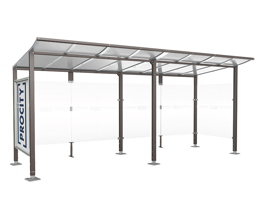 Wartehalle Modulo Farbe:Procity grau|Länge:5 000 mm|Struktur:Schaukasten und eine Seitenverkleidung|Weitere Merkmale:Auf Bodenplatten