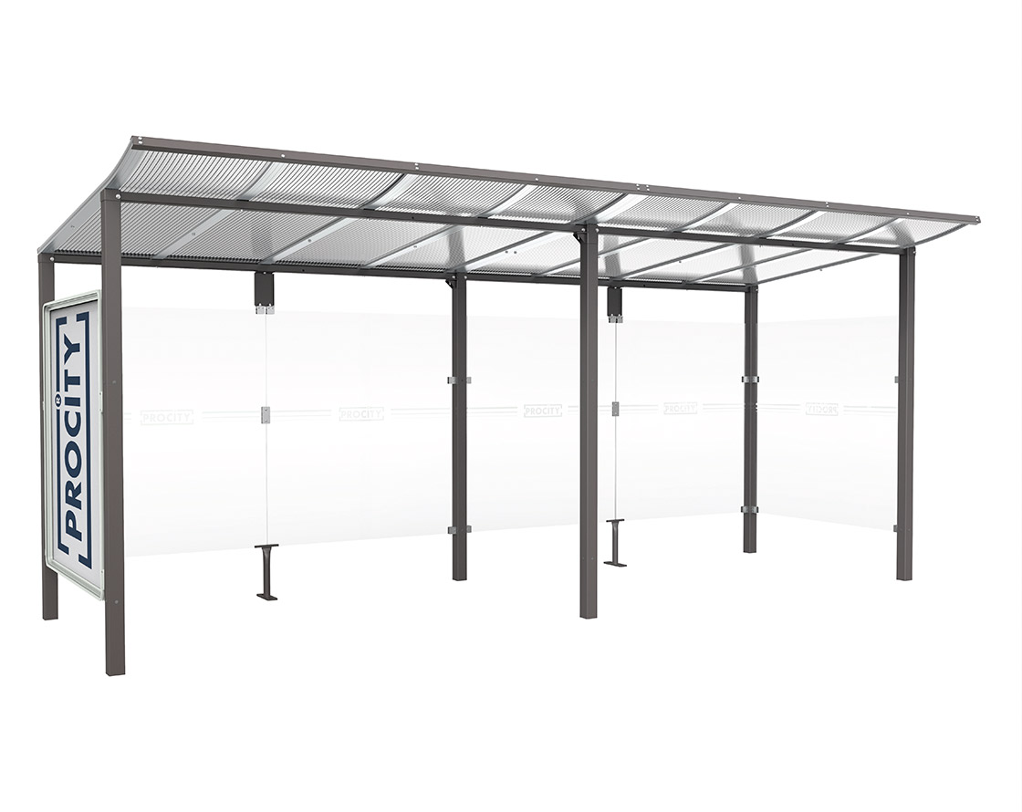 Wartehalle Modulo Farbe:Procity grau|Länge:5 000 mm|Struktur:Schaukasten und eine Seitenverkleidung|Weitere Merkmale:Zum Einbetonieren