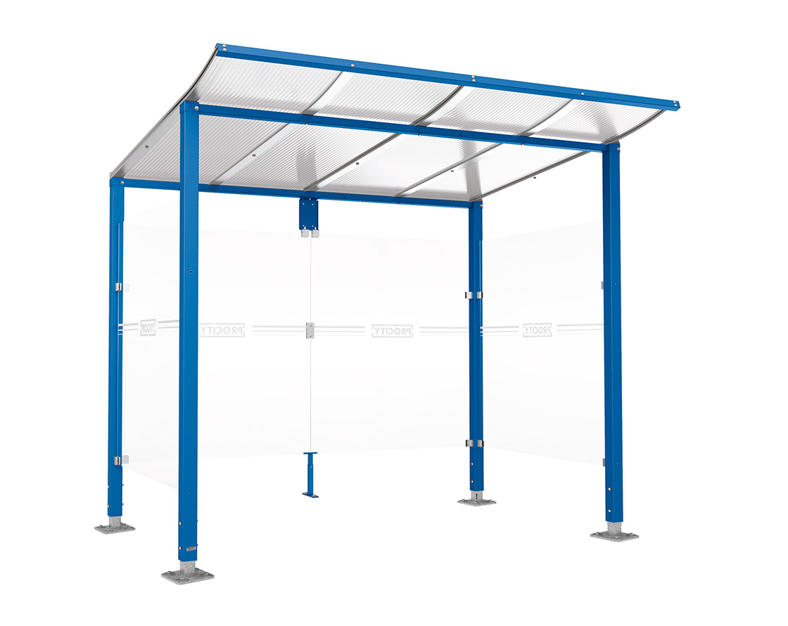 Wartehalle Modulo Farbe:RAL 5010|Länge:2 500 mm|Struktur:2 Seitenverkleidungen|Weitere Merkmale:Auf Bodenplatten