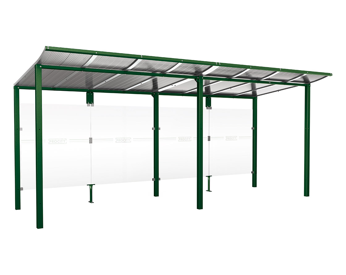 Wartehalle Modulo Farbe:RAL 6005|Länge:5 000 mm|Struktur:Ohne Seitenverkleidung|Weitere Merkmale:Zum Einbetonieren