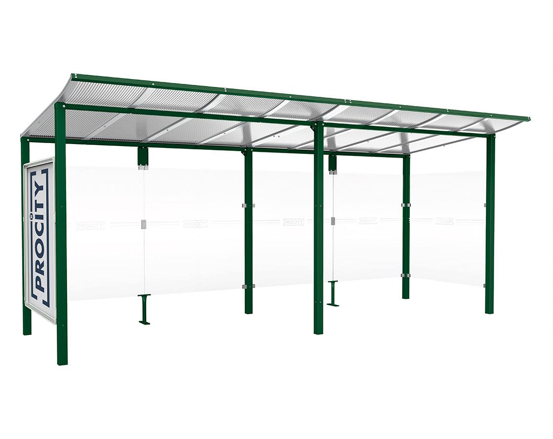 Wartehalle Modulo Farbe:RAL 6005|Länge:5 000 mm|Struktur:Schaukasten und eine Seitenverkleidung|Weitere Merkmale:Zum Einbetonieren