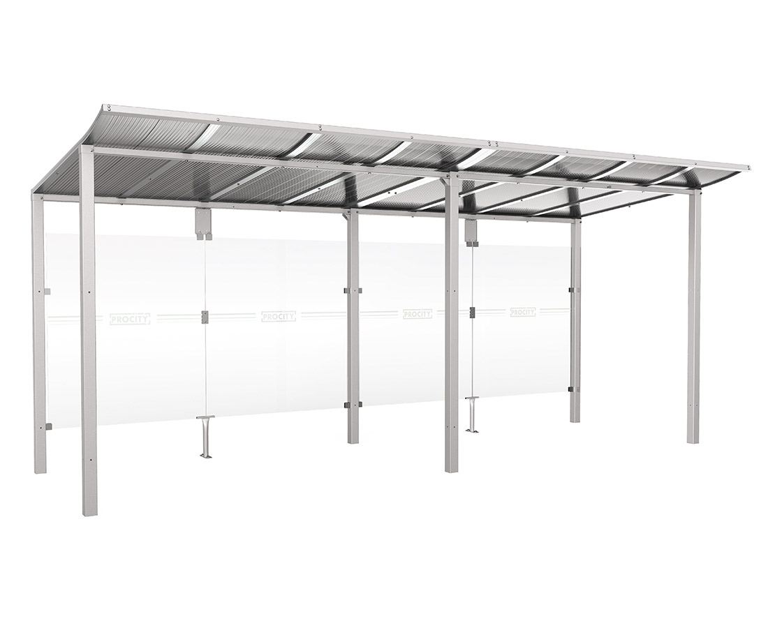 Wartehalle Modulo Farbe:RAL 7044|Länge:5 000 mm|Struktur:Ohne Seitenverkleidung|Weitere Merkmale:Zum Einbetonieren
