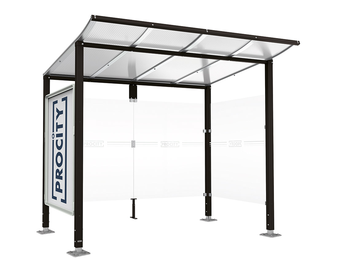 Wartehalle Modulo Farbe:RAL 9005|Länge:2 500 mm|Struktur:Schaukasten und eine Seitenverkleidung|Weitere Merkmale:Auf Bodenplatten