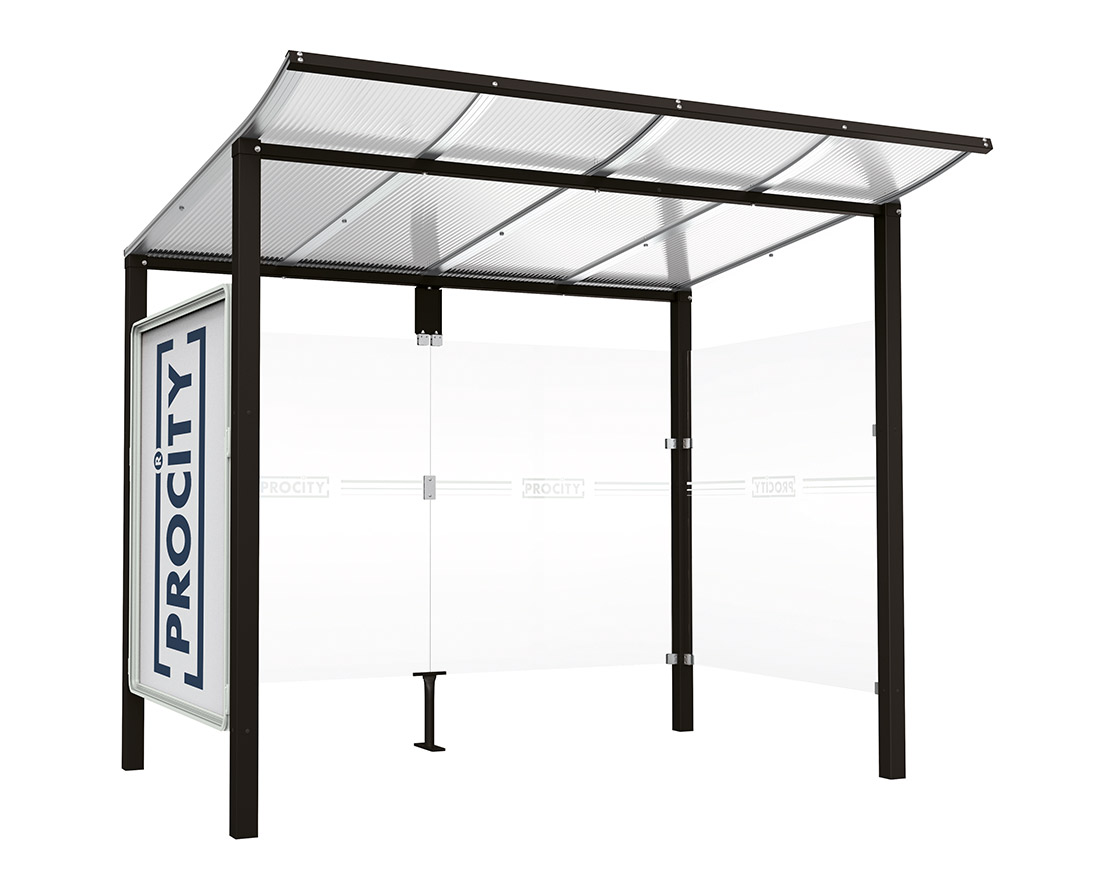 Wartehalle Modulo Farbe:RAL 9005|Länge:2 500 mm|Struktur:Schaukasten und eine Seitenverkleidung|Weitere Merkmale:Zum Einbetonieren