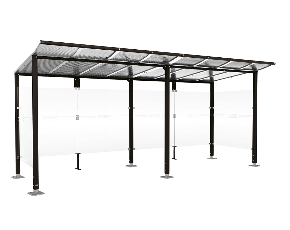 Wartehalle Modulo Farbe:RAL 9005|Länge:5 000 mm|Struktur:2 Seitenverkleidungen|Weitere Merkmale:Auf Bodenplatten
