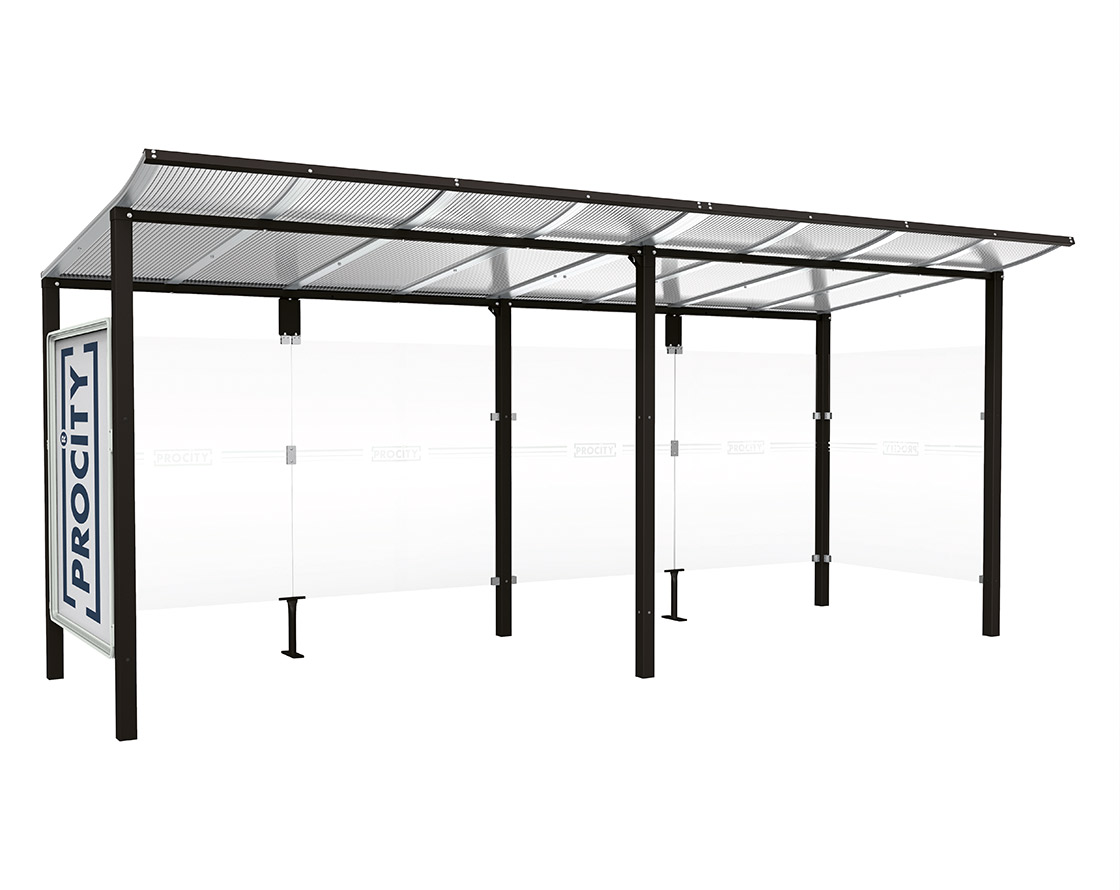 Wartehalle Modulo Farbe:RAL 9005|Länge:5 000 mm|Struktur:Schaukasten und eine Seitenverkleidung|Weitere Merkmale:Zum Einbetonieren